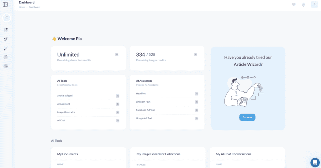 Core features emphasize coordination and scale. The Content Generation Engine allows short and long-form assets across channels. A library of 80+ AI Assistants covers specific tasks for social posts, product descriptions, emails, and headlines. The Article Wizard guides long-form creation through step-by-step structure, with one-click generation or URL-based drafting. AI Chat offers brainstorming and rapid iterations. A built-in AI Image Generator produces license-free visuals for campaigns.