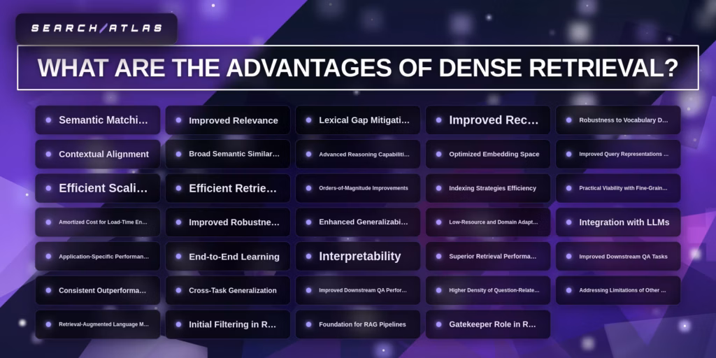 The advantages of dense retrieval are listed below.