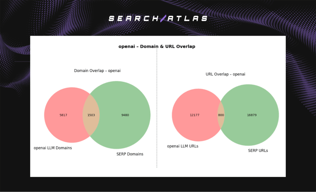 The 2 core metrics analyzed are Domain Overlap (%) and URL Overlap (%). Both metrics capture different layers of alignment between large language models and Google Search. Domain overlap measures how often LLMs cite the same websites found in SERP results. URL overlap measures how often they reference the exact pages ranked by Google.