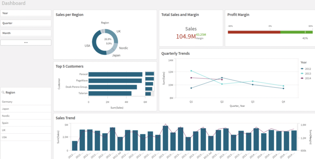 Qlik Sense is a data analytics platform that builds interactive dashboards, and enterprise analytics from multiple data sources. Qlik Sense uses an associative model that lets analysts explore relationships across entire datasets without rigid hierarchies or fixed query paths.