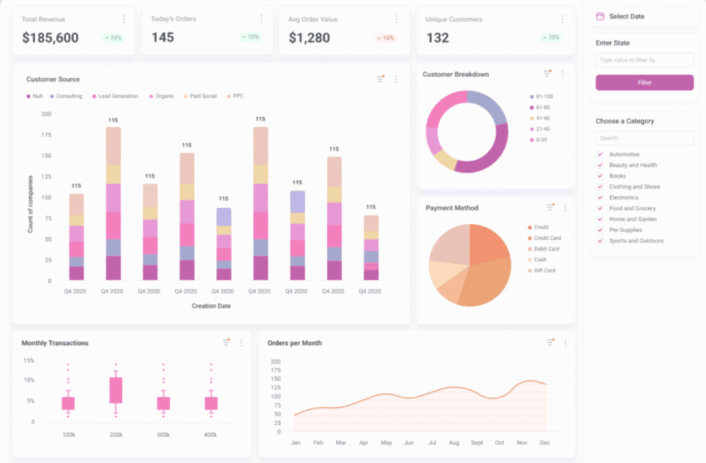- Flexible Dashboard Templates. Advanced systems offer drag-and-drop builders, heat maps, funnel charts, and customizable visual layouts that adapt to different reporting needs.