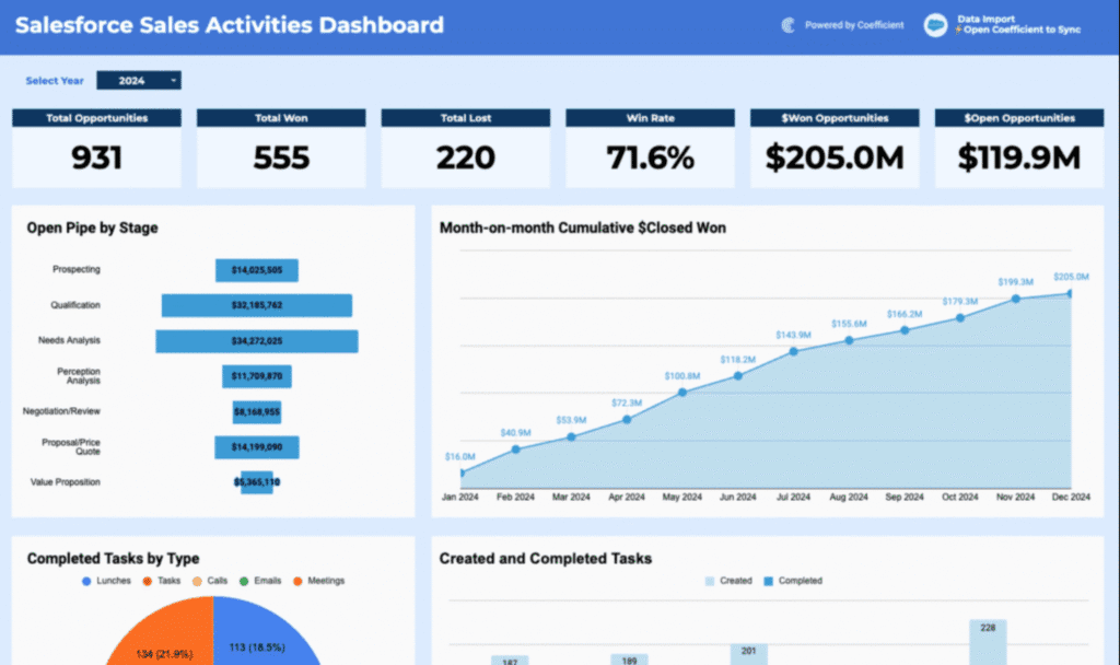 Core tools in Coefficient include two-way sync between spreadsheets and connected systems, scheduled data refreshes, bulk updates, workflow automation, and AI tools for building dashboards, formulas, and insights. Coefficient ensures that spreadsheet reports always use live, accurate data pulled from CRMs, analytics tools, and databases.
