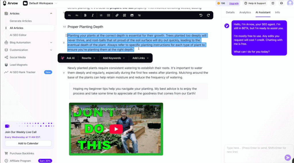 | 16 | Arvow | Automated SEO article creation and publishing | $59 to $389/month |