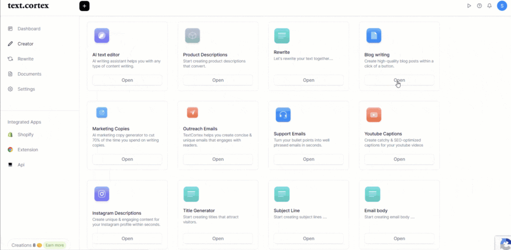 TextCortex is an AI writing assistant built to integrate naturally into daily tasks through its browser extension and multi-purpose writing tools. TextCortex generates content, rewrites passages, translates text, summarizes information, and supports grammar refinement inside any webpage or document.