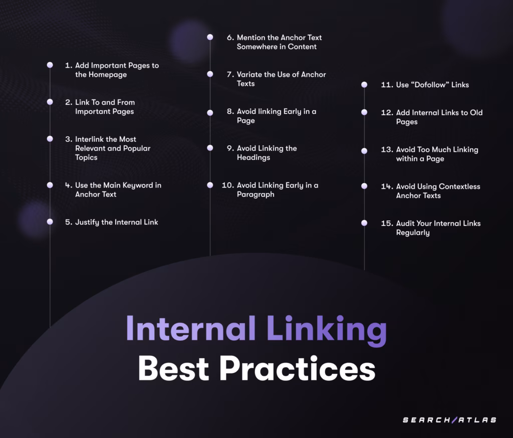 Internal linking best practices include adding important pages to the homepage, using relevant anchor text, avoiding excessive links, and conducting regular audits. Thoughtfully connecting your pages creates an internal linking SEO framework that enhances the user experience and search visibility.