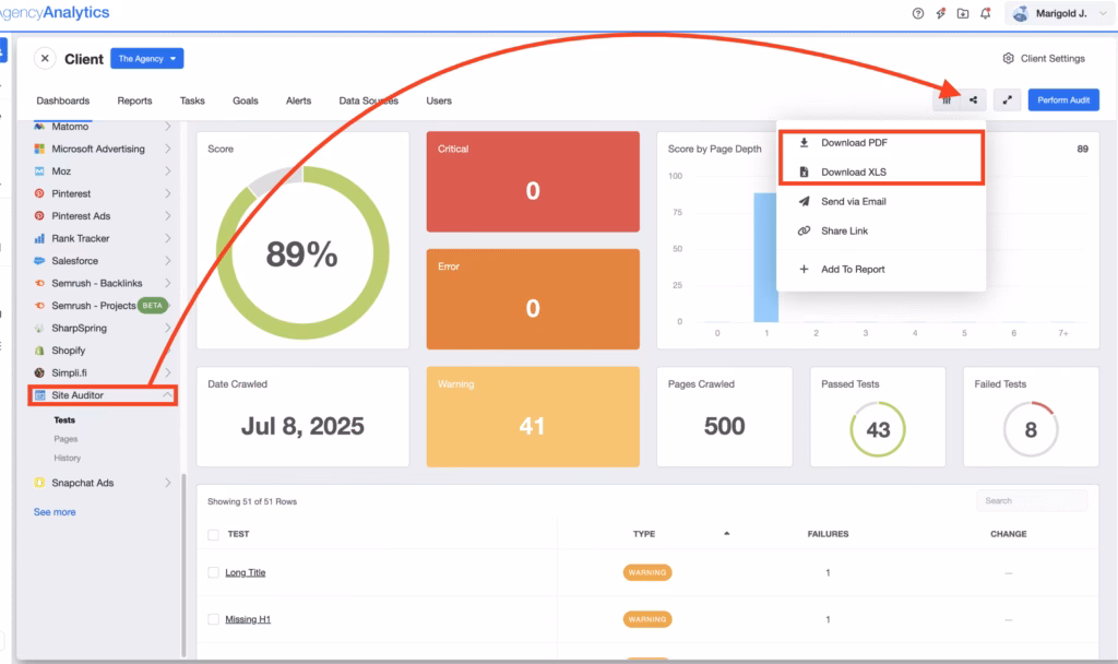2. How to Export Site Audit Data from AgencyAnalytics and Import to Search Atlas?