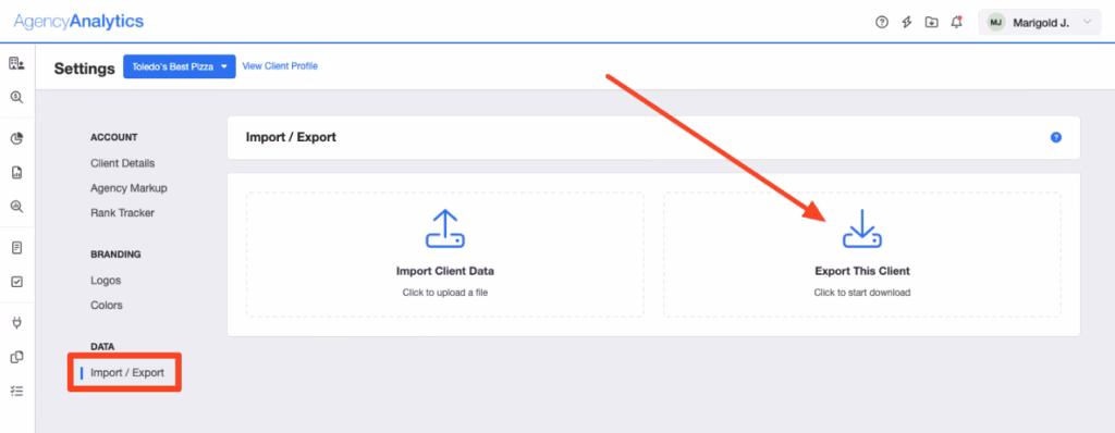 To transition your backlink research workflow, save your key backlinks data from AgencyAnalytics for reference.