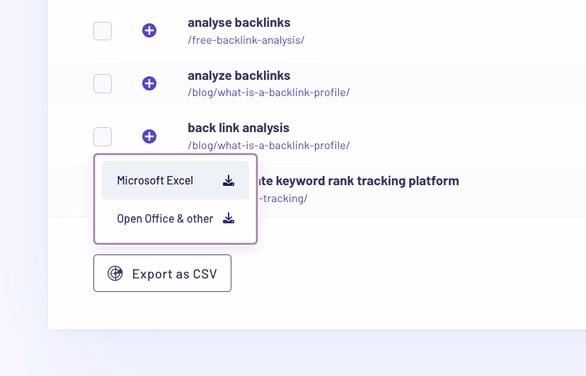 Download the CSV file with your keyword data, which will include columns such as Keyword, Search Volume, Rank, and Traffic.