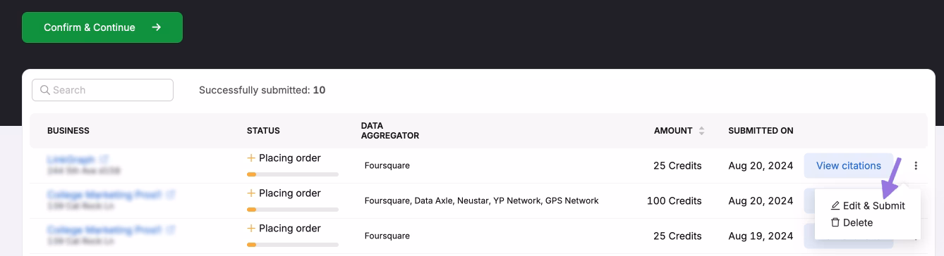Search Atlas offers a powerful tool for building local citations by submitting your business data to the 5 major data aggregator networks.