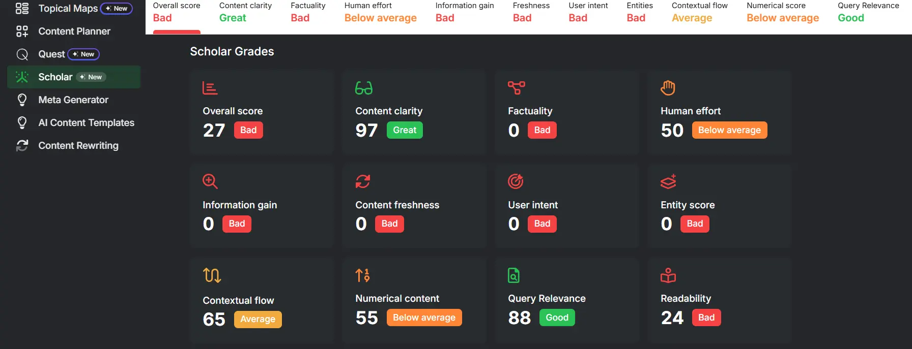 The Search Atlas SCHOLAR Tool analyzes each medical draft before publication. SCHOLAR scores the health content based on medical entity coverage, passage relevance, citation structure, and clarity of medical purpose based on the Google guidelines.