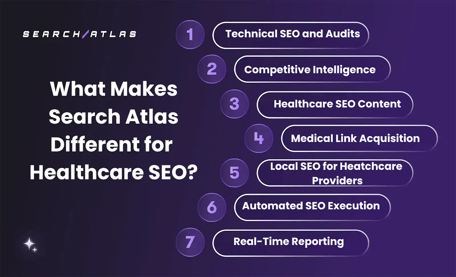 The 7 main ways Search Atlas excels for healthcare SEO are listed below.