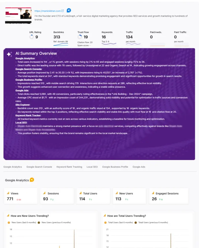 Search Atlas directly addresses travel SEO challenges with its comprehensive search marketing platform. The platform provides tools to optimize destination-based search visibility, manage multiple Google Business Profiles, and monitor competitor travel business performance.