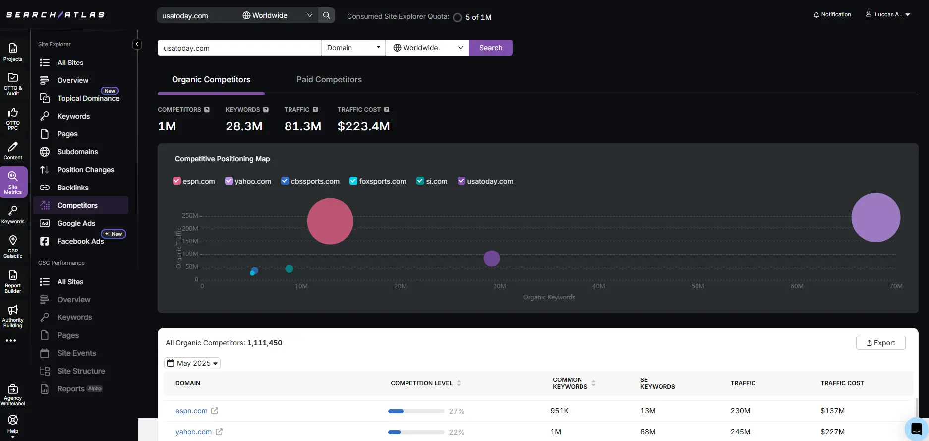 Search Atlas offers 5 competitor research tools that expose travel marketing gaps. The 5 tools are listed below.