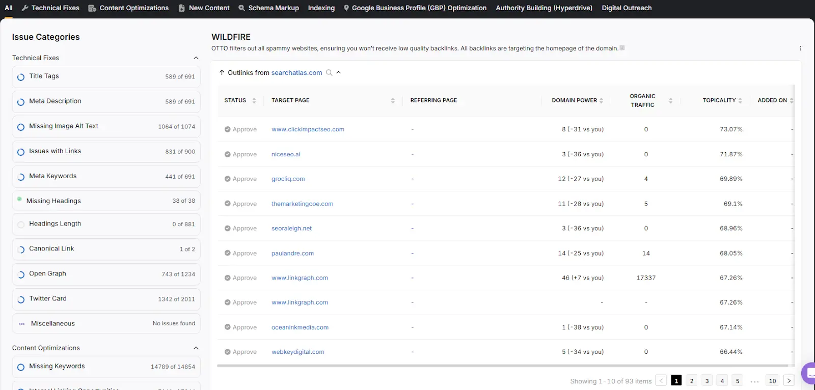 Search Atlas provides specialized tools for travel SEO. OTTO SEO automatically optimizes thousands of pages while maintaining your control over the optimization process.