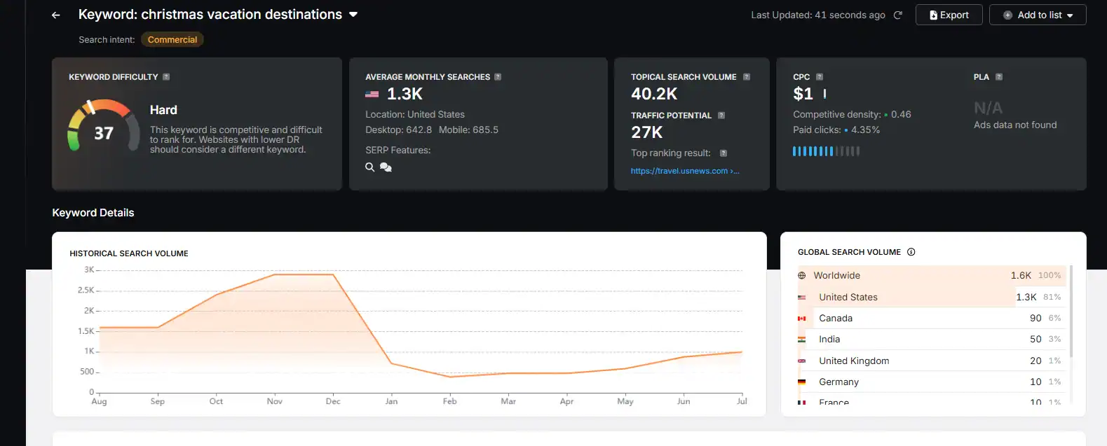 - Compare related travel keywords to see which terms perform best in specific seasons. Different destination keywords often peak at different times.