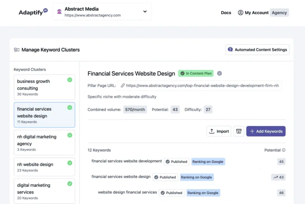 12 | Adaptify | Lightweight SEO automation | $199 to $899/month |