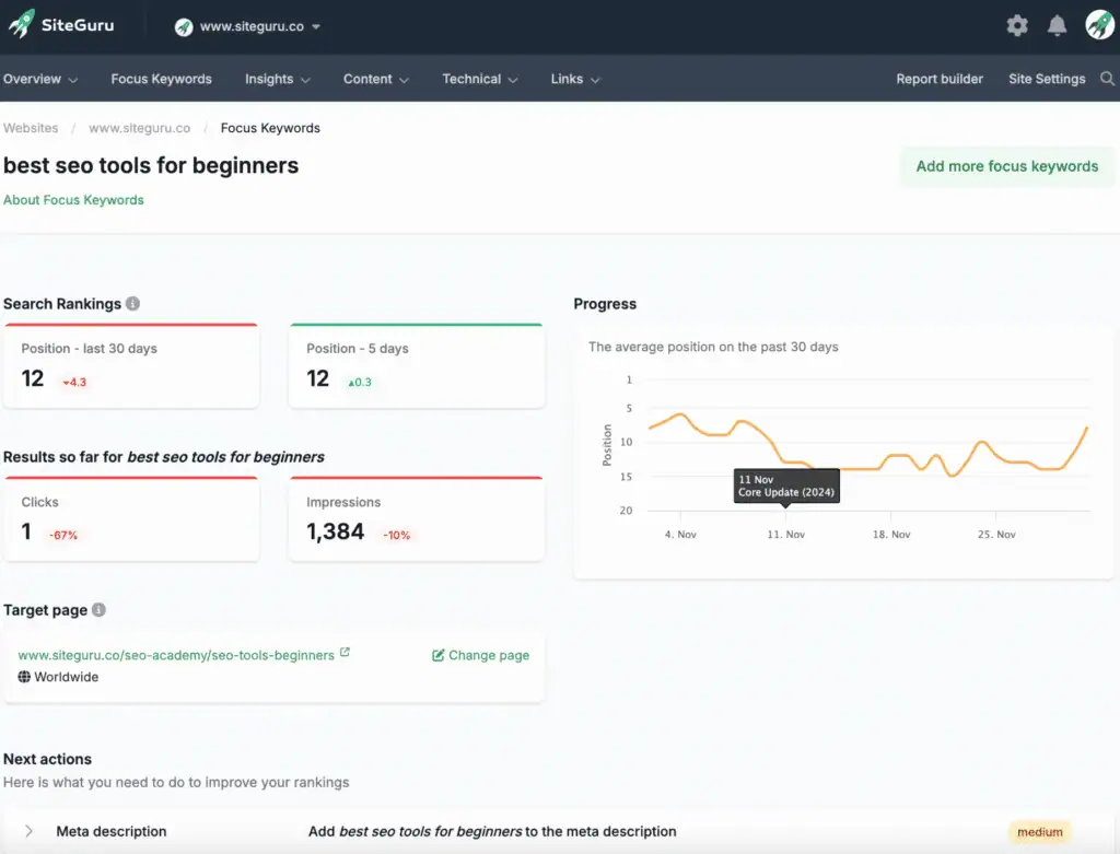As a Wincher alternative, SEO.AI emphasizes automation over manual control. SEO.AI delivers faster, AI-driven content recommendations that streamline workflows for businesses that want to act quickly rather than monitor rankings in detail.