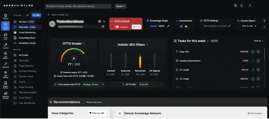 Beyond tracking, Search Atlas automates SEO execution through its built-in OTTO SEO assistant. OTTO pushes live optimizations across entire websites, managing metadata, schema markup, and internal linking. Instead of manual fixes, it deploys updates instantly.