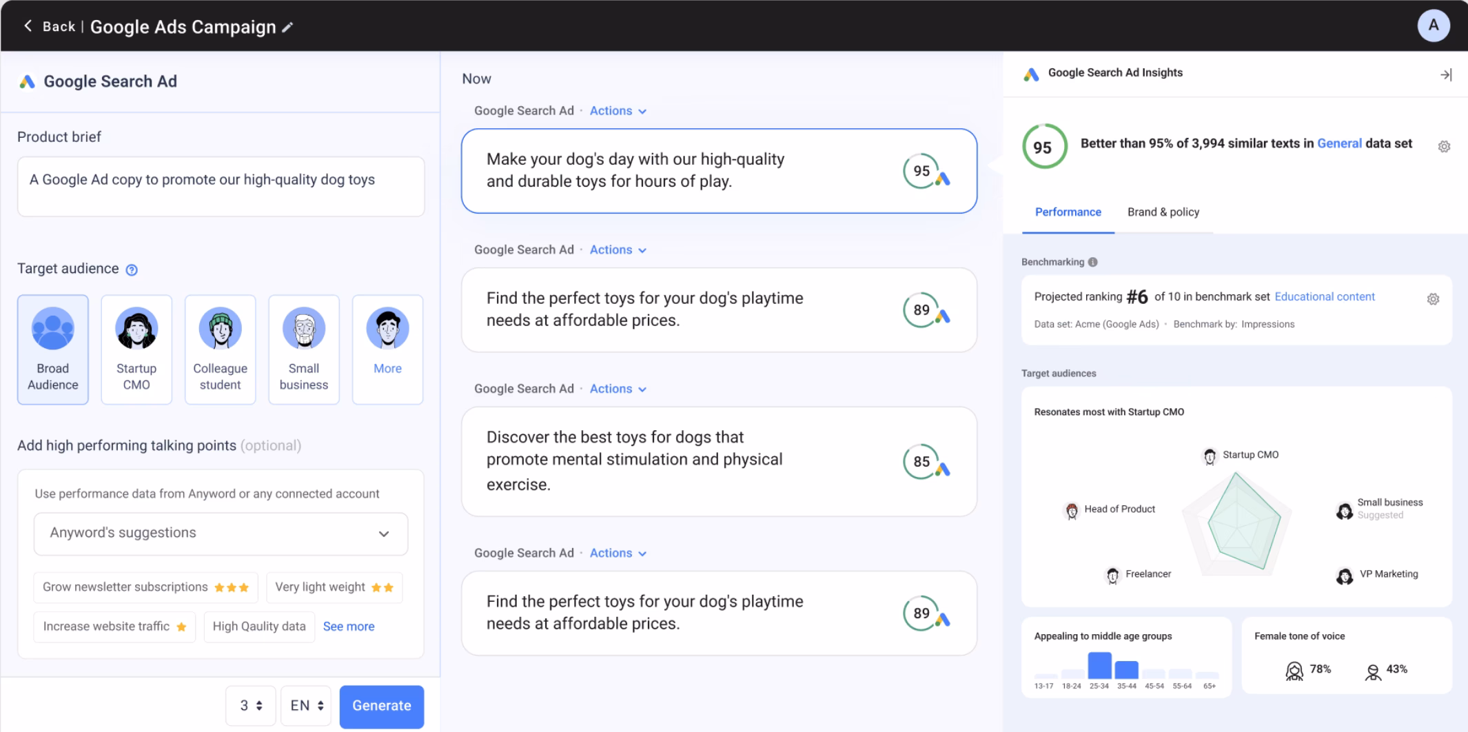 3. Anyword: Best HyperWrite Alternative for Conversion-Focused Ad and Landing Page Copy