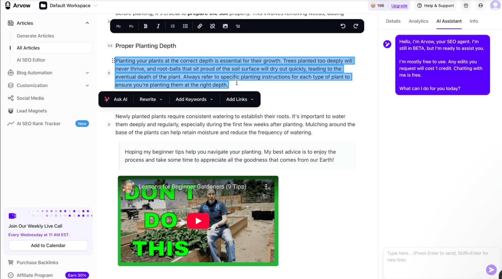 17ArvowSEO content refresh and auto-publishing$59 to $389/month