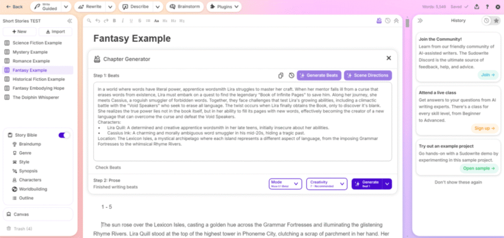 28. Sudowrite: Best QuillBot Alternative for Creative Writing and Fiction Rewrites