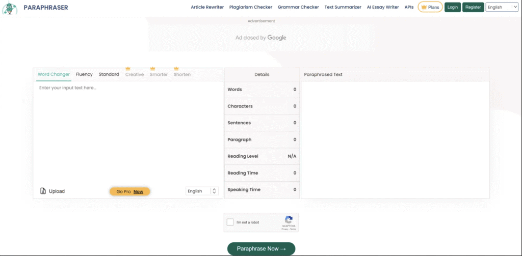 7. Paraphraser.io: Best QuillBot Alternative for Quick Free Paraphrasing