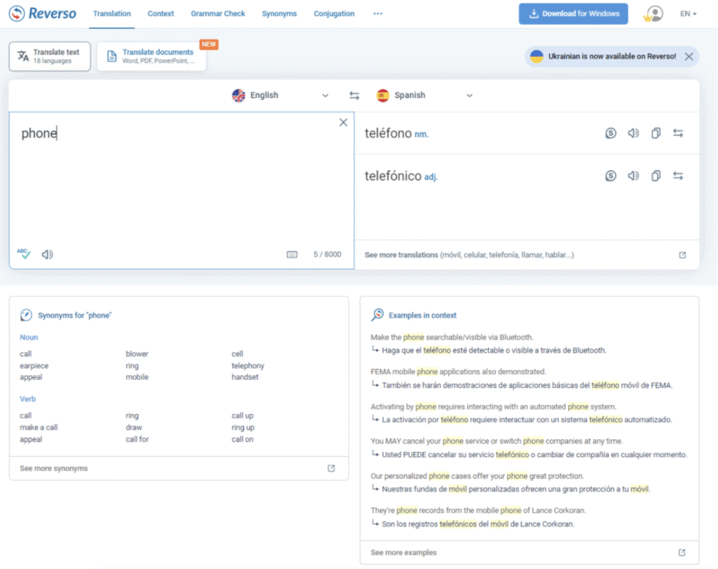 Reverso is a multilingual writing and translation suite built to improve comprehension, phrasing, and language learning through contextual examples drawn from real-world texts. Reverso offers translation, grammar correction, synonym discovery, conjugation, and pronunciation across its apps and extensions.