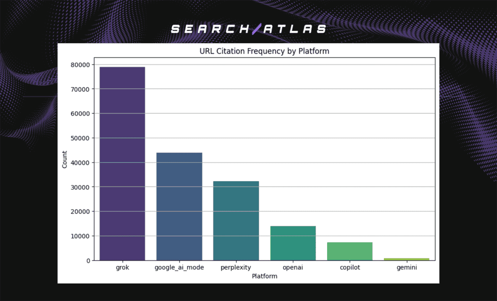 - Gemini cites the freshest URLs overall, indicating stronger reliance on recently published content.