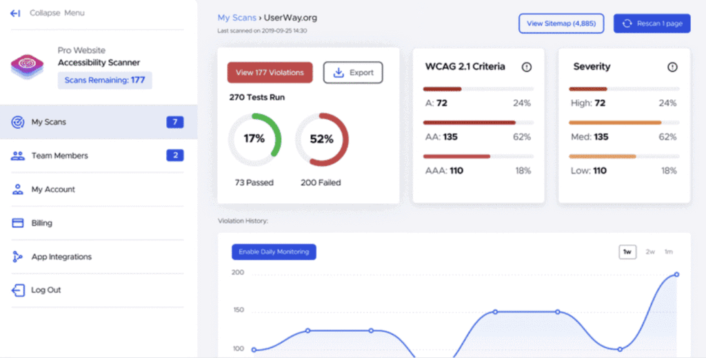 EqualWeb Accessibility Scanner delivers stronger accessibility validation and automated detection than Siteimprove. EqualWeb focuses on WCAG-driven scanning, full-site audits, and prioritized remediation guidance across complex page structures.